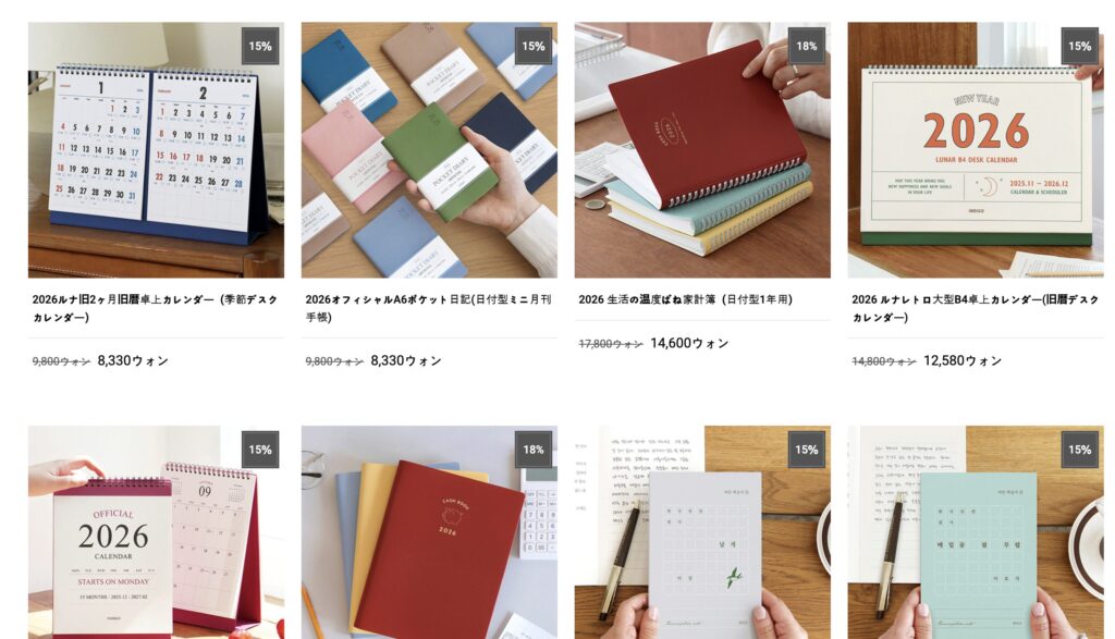 ミニサイズから1年仕様まで揃っており、旅行のお土産にもぴったり。公式店舗はソウル・仁寺洞(インサドン)「쌈지길(サムジギル)」内にあり、現地で手に取って選べるのも魅力です。