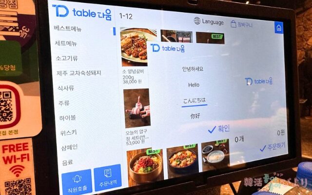 狎鴎亭焼肉店本店では、注文はすべてタブレット式。しかも日本語対応なので、韓国語がわからなくても大丈夫です。