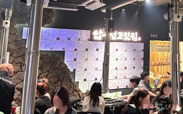 店内には多くの芸能人サインが飾られており、K-POPファンや韓国ドラマ好きにはたまらない空間。