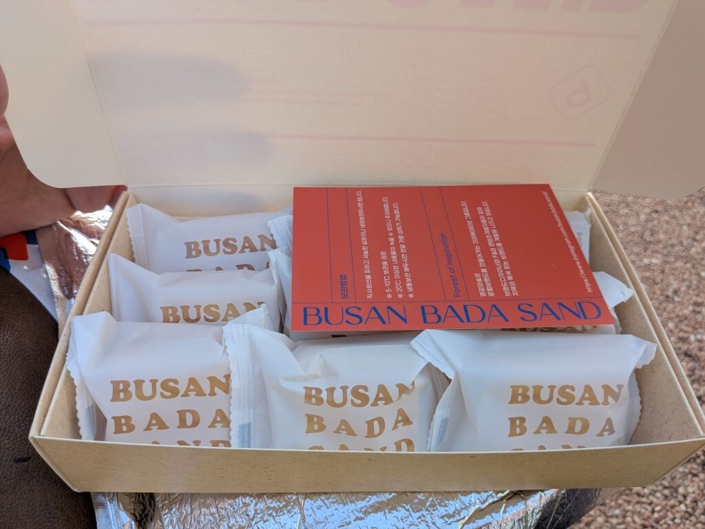 かつては海雲台(ヘウンデ)の本店でしか手に入らない「幻のスイーツ」として知られていましたが、現在は人気の観光スポット「甘川文化村(カムチョンムナマウル)」にも店舗(釜山パダサンド・ヒルズ)がオープン。