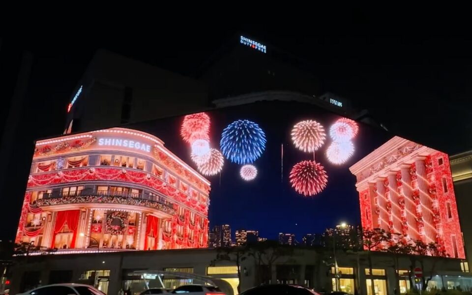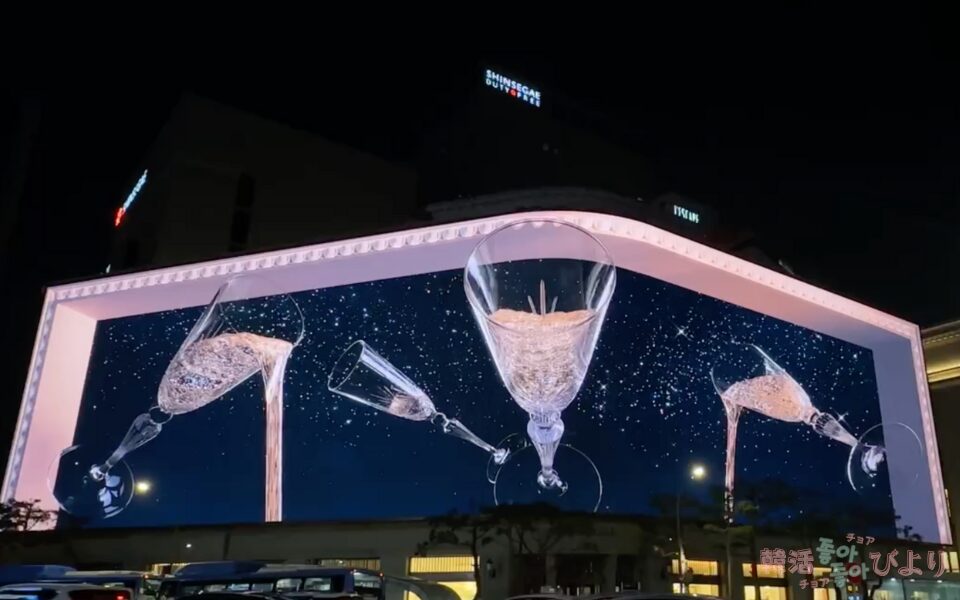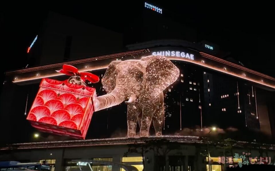 ソウル中心部、中区忠武路一街にある「新世界百貨店 本店」。こちらでは大きなスクリーンに映し出される、まるで映像が飛び出してくるような迫力のプロジェクション映像が楽しめます。