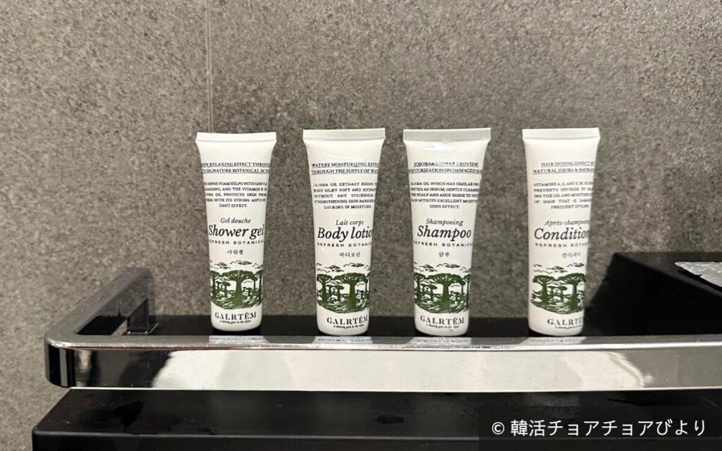 シャワージェル、シャンプー、コンディショナーなどもひと通り揃っていました。