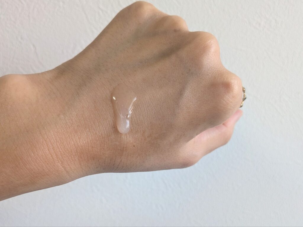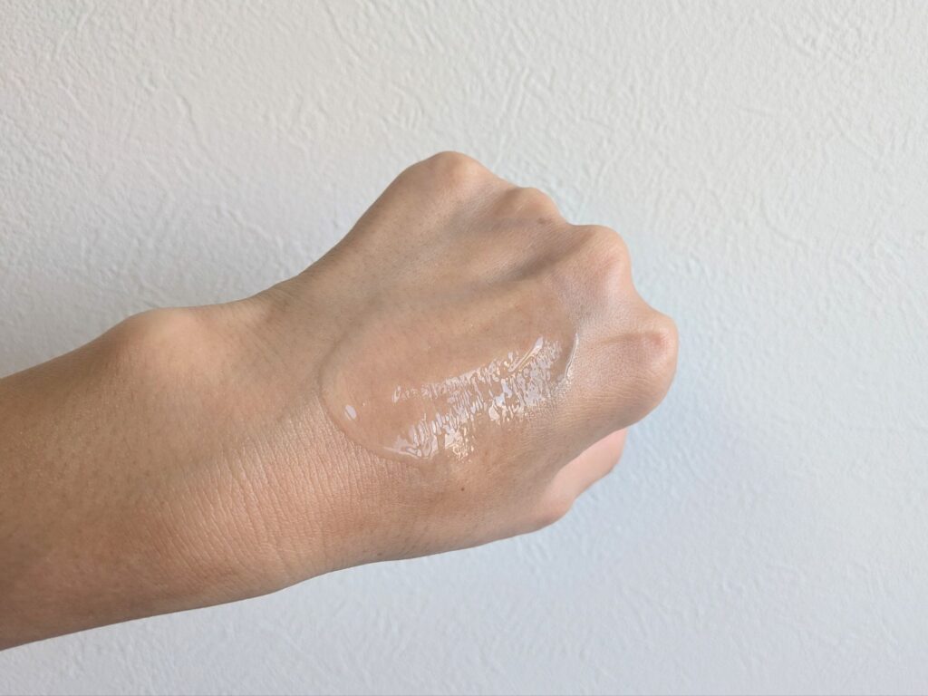 肌にのせるとすっとなじんでベタつかず、ジェルのような軽い質感なので、重ね塗りしても厚ぼったさが出ないのが好印象でした。