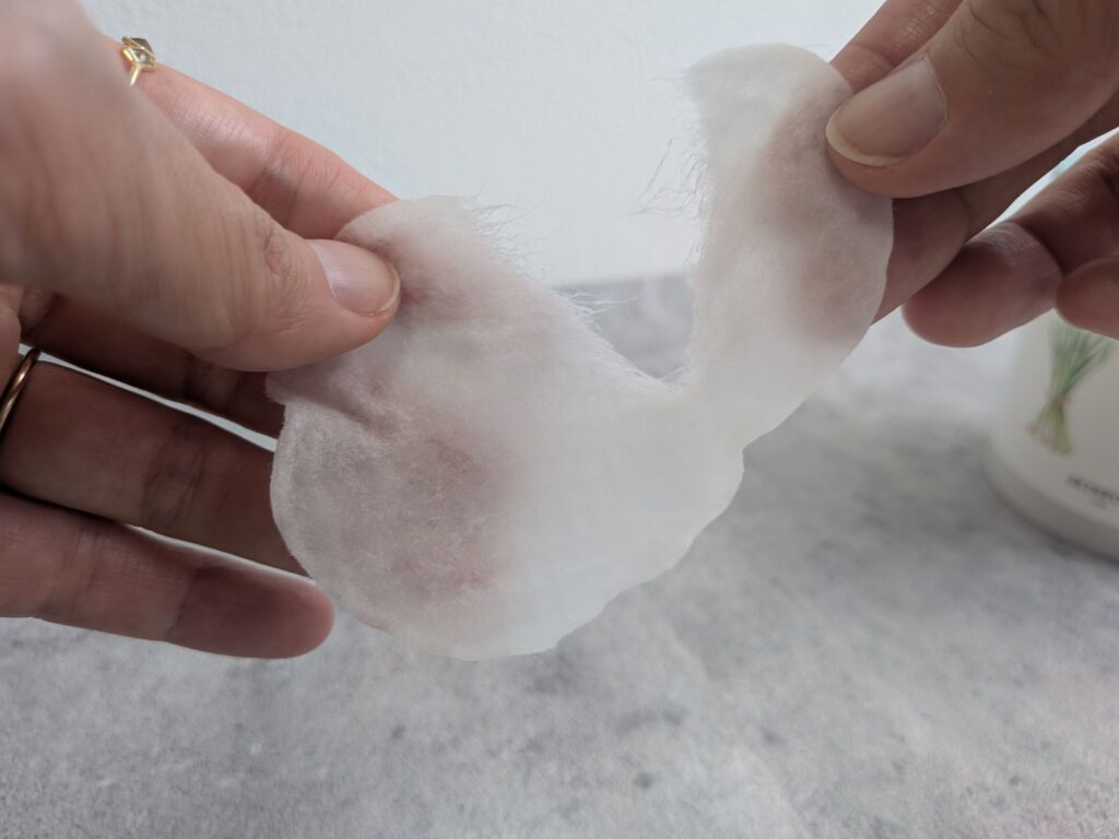 1枚1枚がけっこう厚みがあるので、1枚でパッティングするのもよし、割いてコットンパックとして顔全体に使えるのも嬉しいです